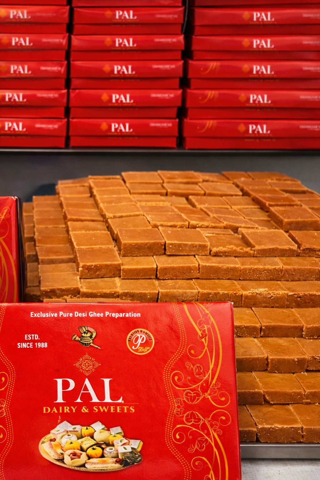 Experience the true richness of Roasted Khoya Burfi—a signature treat from Pal Sweets made with pure buffalo milk from our own farm. Add it to your cart and enjoy premium mithai delivered to your doorstep.